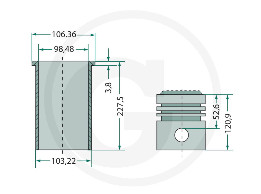 GRANIT Kolbensatz kpl. 4 Ringe, Ø 98,48 mm passt für Eicher / Landini / Massey Ferguson – Artikel-Nr. 38015101