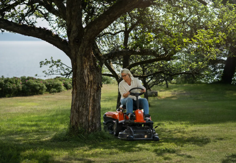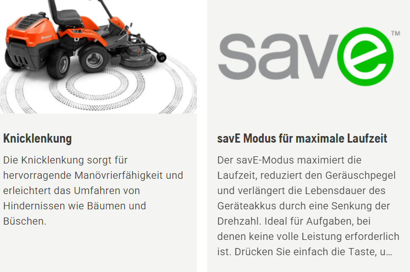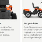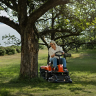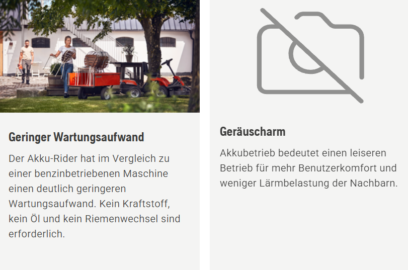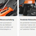 Dank Knicklenkung lässt sich der Rider besonders wendig steuern und ermöglicht präzises Mähen rund um Bäume, Sträucher und andere Hindernisse. Der leise Batteriebetrieb sorgt zusätzlich für eine angenehme Arbeitsumgebung.
