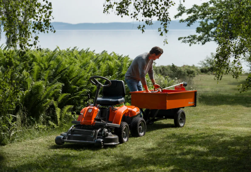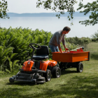 Der Husqvarna Rider R 112iC ist ein leistungsstarker, batteriebetriebener Aufsitzmäher für komfortables und effizientes Mähen größerer Rasenflächen.