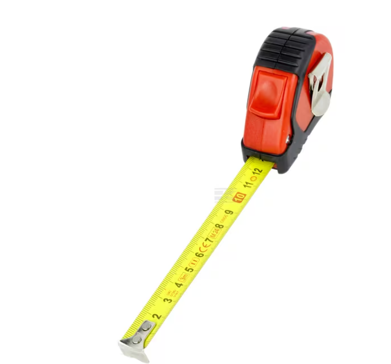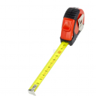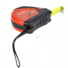 Robustes Maßband mit Kunststoffgehäuse und strapazierfähiger Lackierung. Sie ist mit rutschfesten Gummieinsätzen, Verschluss, Textilband und Gürtelclip ausgestattet.