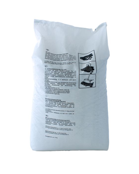 Öl- und Chemikalienbinder für die Aufnahme von Ölen und anderen ausgelaufenen Flüssigkeiten. FürVerkehrsflächen geeignet, Ölbinder vom Typ III R.