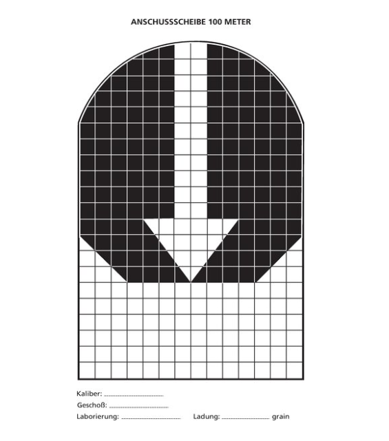 Raster 1x1cm Pfeilspitze als Haltepunkt. Ideal für Fadenkreuz-, Leuchtpunkt- und offene Visierung. DIN-A4-Hochformat. Packung à 10 Stück
