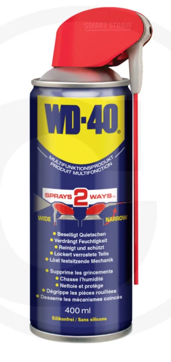 Produktdaten: Das WD-40 Vielzweck-Spray in der 400 ml Dose (Artikel-Nr. WD40400SSDE) ist das weltweit bekannteste Multifunktionsprodukt für Werkstatt, Haushalt und Industrie. Es vereint fünf Funktionen in einem Produkt: Reinigen, Schützen, Lösen, Schmieren und Verdrängen von Feuchtigkeit.